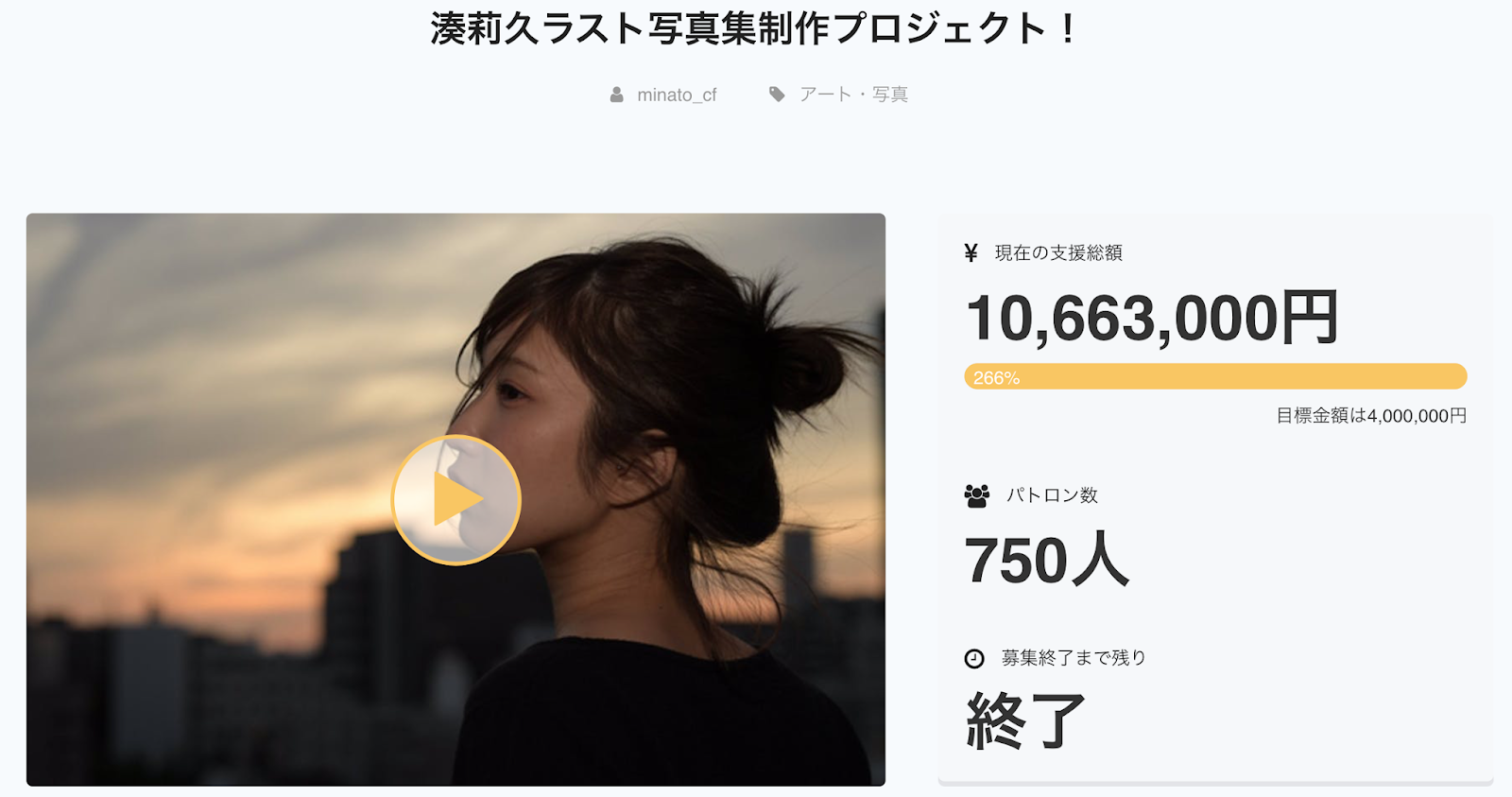 現在最流行的就是上募資平台直接請影迷投資拍攝「最後的寫真集」:只要女優夠有名、敢給的福利夠多那絕對可以募到比預期更多的錢,打個比方好了,不久前才退出恵比寿マスカッツ(惠比壽麝香葡萄)的湊莉久的募資計畫一口氣就吸引到了750人丟錢,拿到了比目標2人倍還多的錢(要400萬日幣結果拿到了1066萬)~