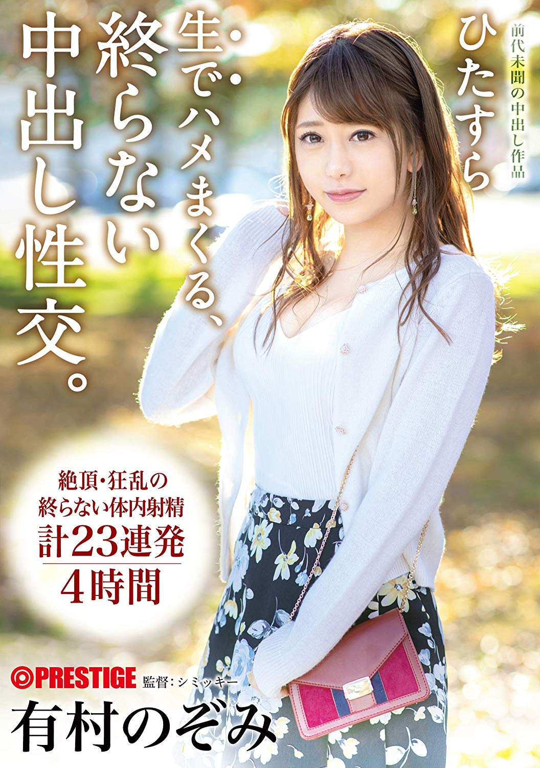 「ひたすら生でハメまくる、終らない中出し性交」這支作品大家都明白,簡單地說就是把女優當中出的肉便器用,一發接一發地射進她的小穴;有村のぞみ(有村希)這次是來打分手炮更是難逃摧殘,在全長4小時的作品中一口氣被打樁射進去了23發精蟲炸彈~
