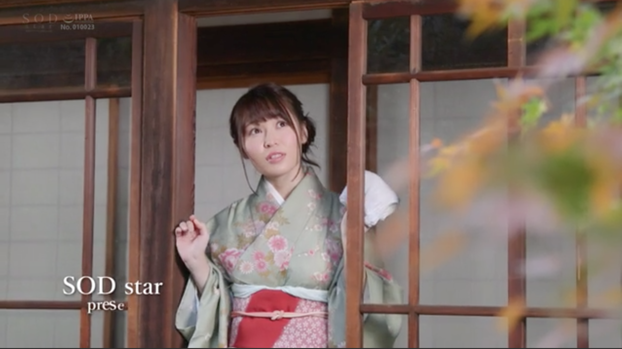正所謂有奶便是娘,一對堅挺的海咪咪是AV女優行走江湖最有力的武器,所以不管みながわ千遥(皆川千遙)拍封面時是把頭髮放下來還是盤起來都要秀出她的大奶。當然,除了那對奶子外SOD還有很潮的身分設定,みながわ千遥(皆川千遙)在下海前是個在旅館工作的服務員,雖然每天穿著浴袍貌似恭謹,不過來自寒冷北陸的她下半身卻是火在燒,每天下班後總是忍不住找A片來看,非常希望有朝一日能讓AV男優的棒子撫慰她慾求不滿的肉體…