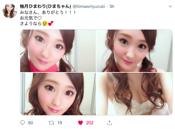 為什麼呢?因為很多女優選在今天和大家說再見:天字第一號的不是別人,正是昨天介紹過的あやみ旬果(彩美旬果),第二位則是誓言要將所學貢獻於社會的柚月ひまわり(柚月向日葵),她們引退的理由之前筆者都寫得很清楚了,一個是荷包滿滿一個則是踏出校園,在這兒也祝福她們的新人生美滿順利,不必再走回頭路~
