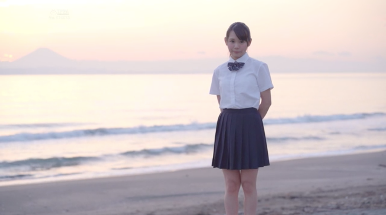 她是深田みお(深田未央),再過幾天就要在SOD集團旗下片商「青春時代」出道了:綁上馬尾、穿上學生服在海邊戲水的她真的很像剛參加完畢業典禮的高中生,就等著一根棒子讓她從女孩變女人了…