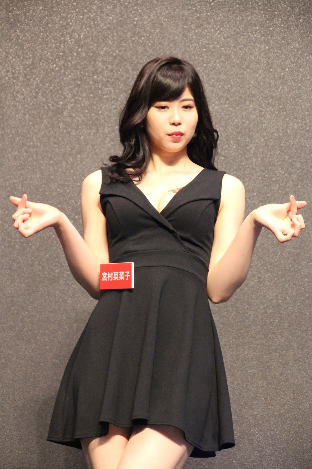 這是她期待已久的海外活動,各位可能不知道,宮村ななこ(宮村菜菜子)是個有理想有抱負的青年,入行的目標就是要爬到暗黑界最高的位置,所以她參加了恵比寿マスカッツ(惠比壽麝香葡萄)、也積極地向海外發展:去年與深田結梨一起來到酷紅幣的攤位讓她士氣大振,只可惜去香港舉辦攝影會的行程連續兩次被取消,讓她有些沮喪~