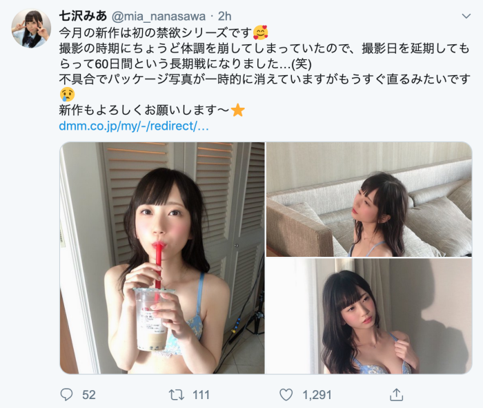 是出了什麼問題?七沢みあ(七澤米亞)在twitter說了,封面出了點問題,目前片商正在修正,修好了就會放出來。只是話說回來,身為一個AVer,大家看過的封面沒有一千也有五百,究竟~七沢みあ(七澤米亞)這支作品的封面是犯了什麼錯?