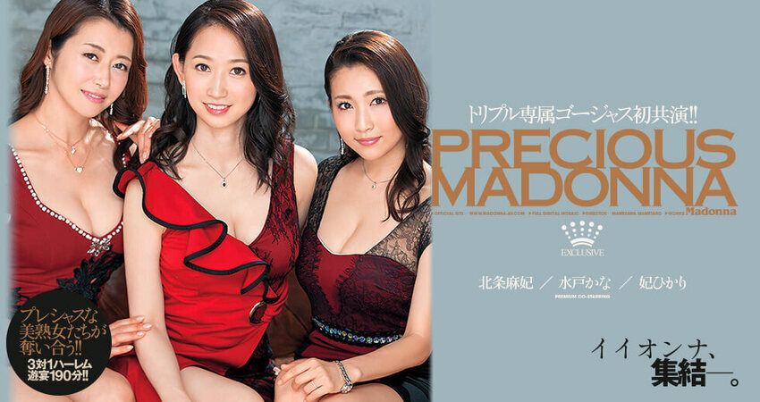 作品名:PRECIOUS MADONNA トリプル専属ゴージャス初共演!!プレシャスな美熟女たちが奪い合う!!3対1ハーレム遊宴190分!!