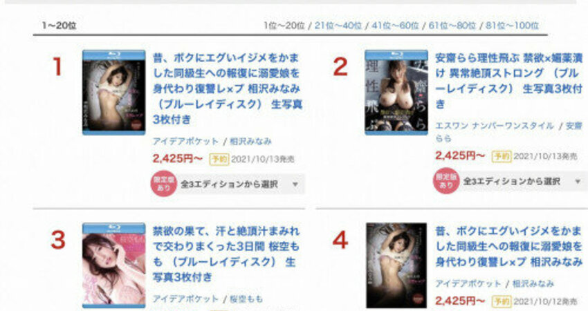 又是禁慾又是媚薬,應該很多人會覺得安齋らら(安齋拉拉)的10月新作一定大賣而且搞不好可以挑戰河北彩花的連霸地位吧?只是想不到啊想不到,作品預約的第二天,她就被打敗了!