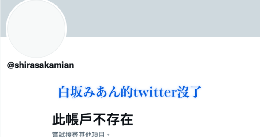 但沒過多久的時間,白坂みあん(白坂美杏) 的帳號再度消失,而且不是被凍結的狀態,是整個被砍掉了〜