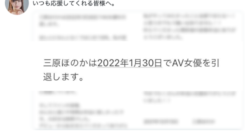 出道6年、可說是這一行最好M女的三原ほのか(三原穗花)剛剛宣布引退,明年1月30日,做完最後的活動後她就要和大家說再見了~