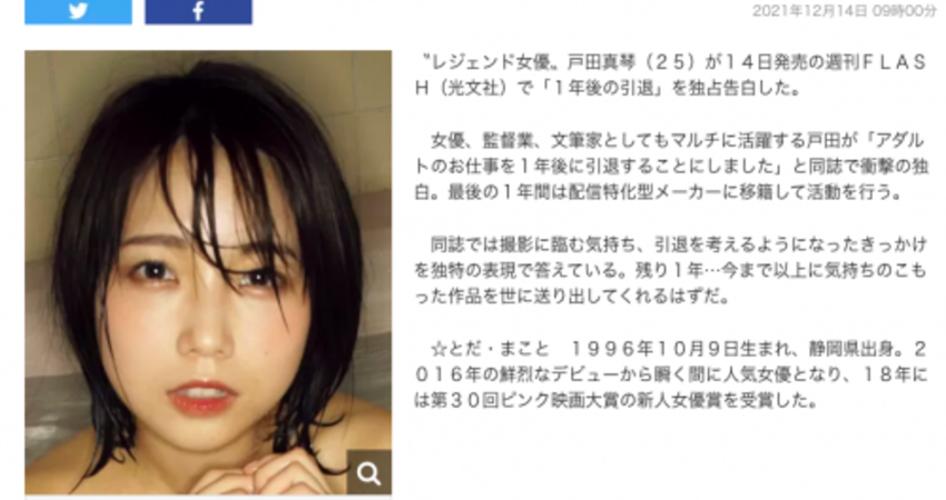 說實在話,一開始聽到戸田是在今天(12/14)宣布移籍情報時我是有嚇一跳,因為今天是WILL集團(北都,原CA)宣布明年1月第二檔發片清單的時候,所以我還在想S1應該不會收、ideapocket最適合她,Madonna好像和她事務所最好⋯結果沒想到她是用在週刊FLASH宣傳這招,因為雜誌今天出刊,所以她和WILL集團「巧合地」同一天宣布新片情報: