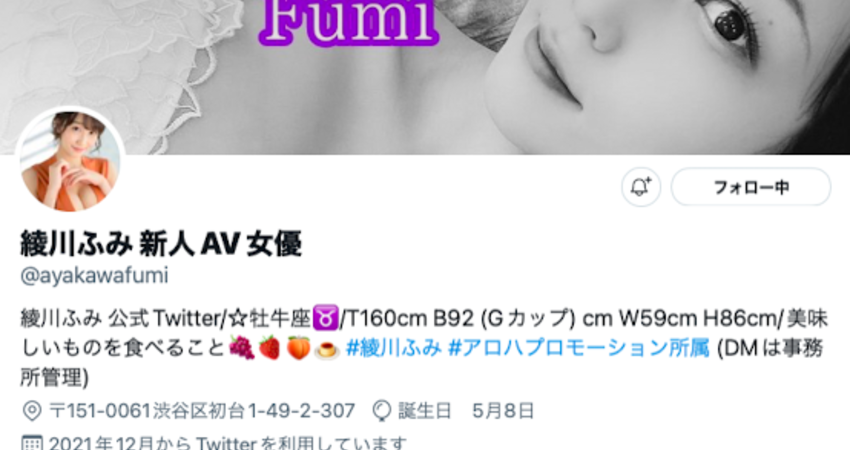 為什麼這麼說?我們都知道很多女優會在出道前於twitter現身吸引影迷追蹤,綾川ふみ(綾川富美)也是,只是等到片商公布她出道的時候我真的有點嚇到: