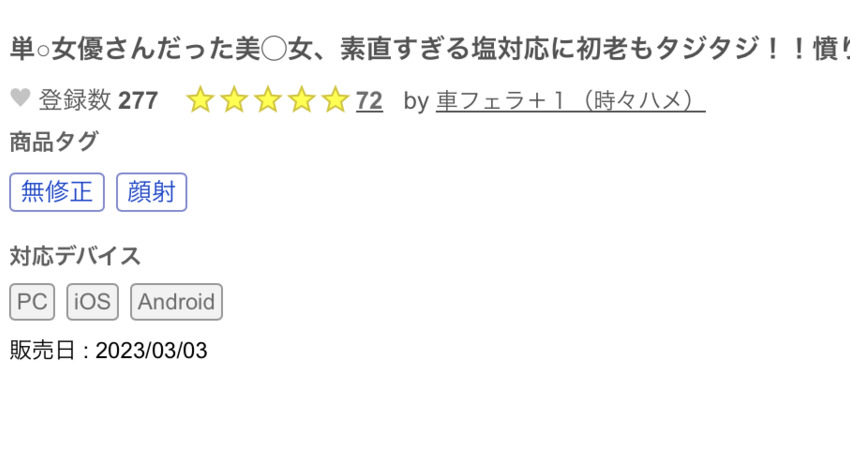 這是由無碼賣家「車フェラ+1(時々ハメ)」推出的作品「単○女優さんだった美◯女、素直すぎる塩対応に初老もタジタジ!!憤りが爆発!!大量顔射で一矢報いる。」(FC2-PPV-3195927),3月3日發售:從標題就可以知道幾件事,首先,這個女孩之前曾在AV界混過、還是個專屬女優(因為她是単○女優),再來,她人不太好聊,感覺很「塩」讓男優聊天完覺得很不是滋味,所以就被懲罰了: