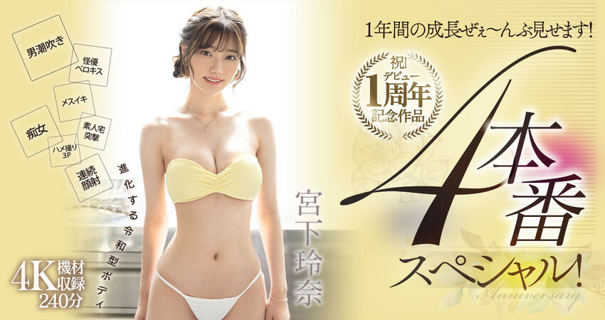 在這個弱食強食的AV界要生存一整年已經很不容易,更不要說是在片商Moodyz擔任專屬女優了,所以,儘管過去曾和FC2平台的賣家合作拍攝無碼片,但宮下玲奈現在已經是整個北都集團(WILL)最強的新秀之一,出道一週年必須好好慶祝〜