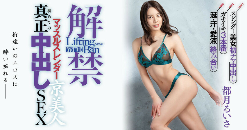 雖然很早就知道她離開IP社了,之前也有一些作品公布情報了,不過一直到了這支「解禁 マッスルスレンダー京美人 初めての真正中出しSEX」,才是再一次介紹都月るいさ(都月琉衣紗)的時候: