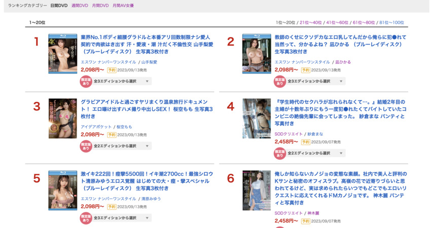 我們先來看昨天FANZA(DMM)公布的銷售排行榜,沒有三上的這一檔發片是誰第一?答案是山手梨愛演出的作品「業界No.1ボディ細腰グラドルと本番アリ回数制限ナシ愛人契約で肉欲はき出す 汗・愛液・潮 汁だく不倫性交」: