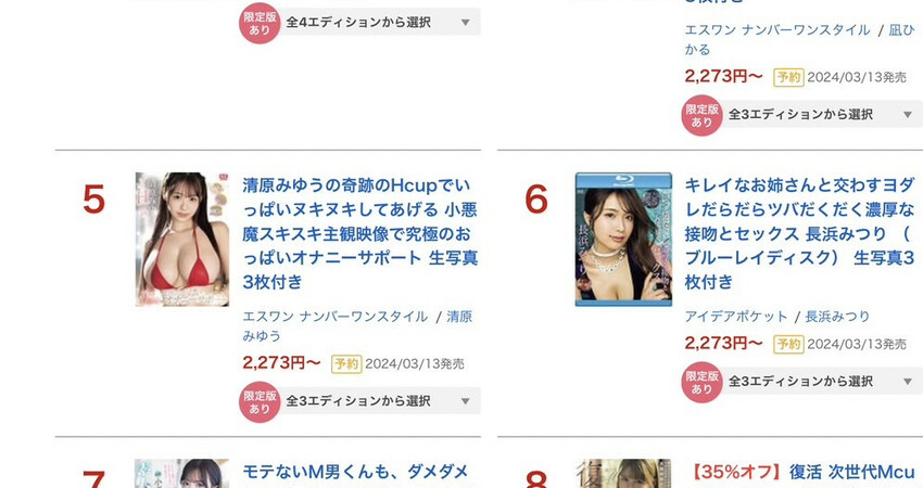 這是昨天Fanza 的銷售排行榜。