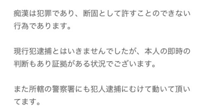 同時,事務所也強調,痴漢是犯罪的行為、是不能被寬恕的,所以希望大家能聲援被性騷擾的恋渕ももな(戀渕桃菜),往後也請所有粉絲多多指教: