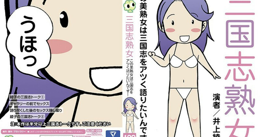 可是怎麼想都很怪吧?這企劃是怎麼出來的?根據文案的說法,原來井上綾子是三國演義的忠實讀者,原著倒背如流的她最喜歡諸葛亮,所以片商就讓她扮成諸葛亮ー而且不只Cosplay喔,在片中還有不少片段聊到其他三國武將,和男優搞得很興奮的井上綾子還口呼「兀突骨」之名,有趣吧?