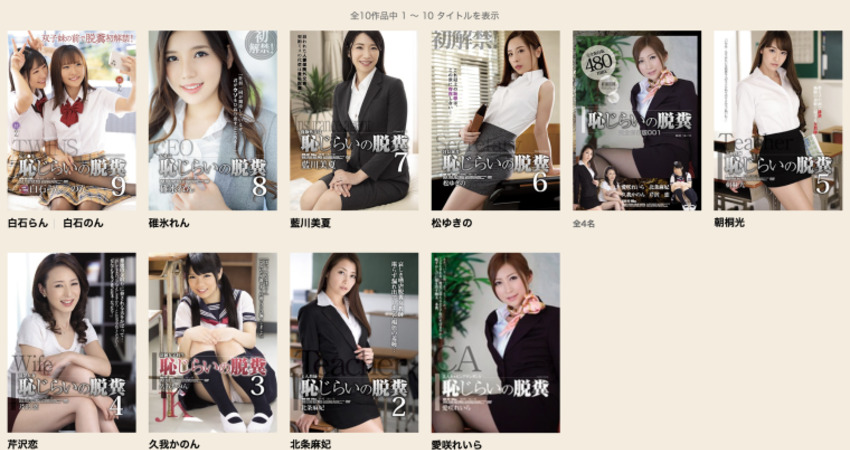 之所以出現這狀況是因為アタッカーズ(Attackers)是凌辱系的戲劇片商,脫糞是結果,重點是過程,所以像松ゆきの(松雪乃)是被上司和新進員工搞到挫屎的社長秘書,藍川美夏是合約出問題被顧客搞到拉屎的保險業務員,碓氷れん(碓冰戀)最慘,封面拍得最漂亮結果卻是「奇跡の脱糞解禁」(ATID-496),一出場是女社長的她因為被部下出賣結果丟了公司,被新社長冴山(就是那一頭白髮看起來變態變態的男優)搞到脫糞,非常困窘〜