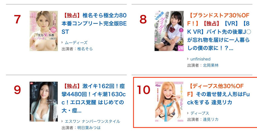 這是昨天Fanza(DMM)的串流平台銷售排行榜。