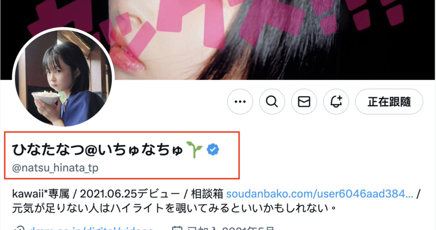 其實不難,因為她也沒要藏,她是片商kawaii*的長期專屬女優「日向なつ(日向夏)」,現在在X(https://x.com/natsu_hinata_tp)的這個名字「ひなたなつ」翻譯還是日向夏,所以她還是她ー