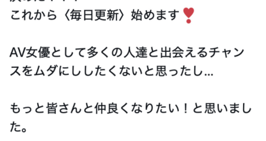 其實還真的沒想像容易,記得之前舉辦白石もも(白石桃)攝影會的時候她就有說不知道怎麼去更新社群,我們覺得很簡單的事像是自拍美美的照片上傳、隨便發文說些有的沒的對她來說都是很困難的事,就算我們把見面會的影片通通備份給到她的手機還是沒看到她發什麼文章,所以我很確定,有些女優是真的不怎麼愛經營社群、也應該有些女優覺得經營社群沒什麼好處,所以就常常出現很久才更新一次的狀況: