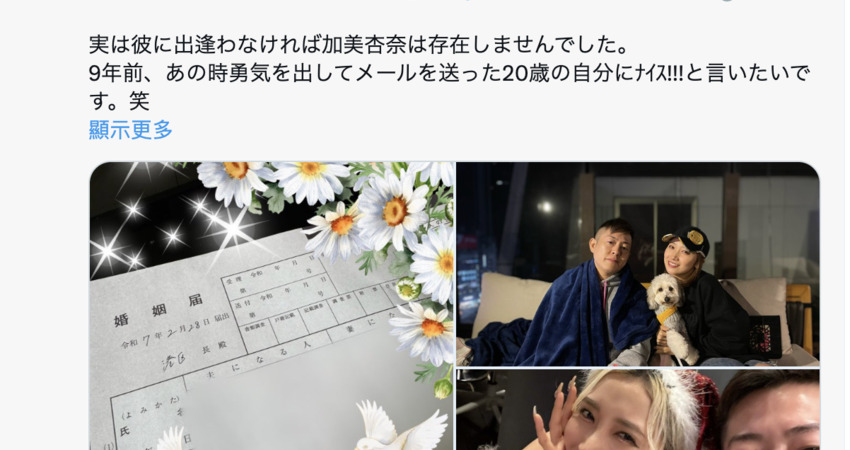是的,如同標題所說,已經引退的女優「加美杏奈」,結婚了。