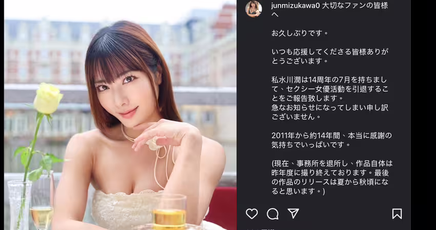 前一陣子把X(https://x.com/junmizukawa0)鎖了起來、預告將有大事宣布的水川潤終於說了,在出道14週年的7月,她要引退了。