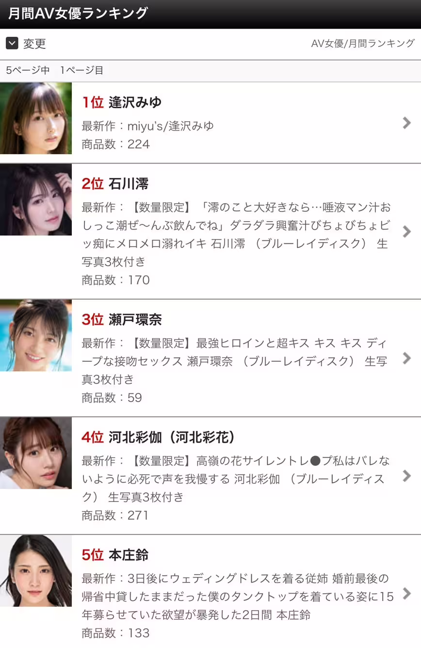 恭喜石川澪,她真的很強。至於逢沢みゆ(逢澤美優)就真的值得大書特書了:眾所皆知,和瀬戸環奈一樣,她也是S1出道的女優,雖然在擔任專屬女優的時候並不算紅,不過極為好勝的她並沒有因此放棄,不再續約,轉職成為無所屬的企画単体女優(キカタン),發片大增,知名度和銷售量迅速擴張,雖然社群經營又被限流又被凍結帳號不是那麼順利,不過她的存在感已經無法忽視,這次在實體片銷售的月間AV女優排行榜拿下第一顯示出她築夢踏實美夢成真,真的要恭喜她〜