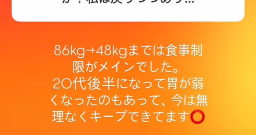 這是她在IG問與答中的爆料,新妻ゆうか(新妻優香)說自己最重的時候有86公斤,現在則是48公斤重,減重的秘訣是「飲食控制」: